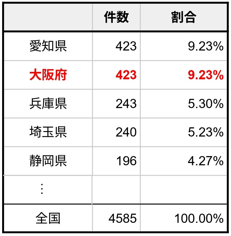 大阪府は経済産業省のデータでも示されていますが、金属製品製造業の事業所数が全国でトップクラスです。その割合は、全体の約10%が大阪に集中しているほどです。